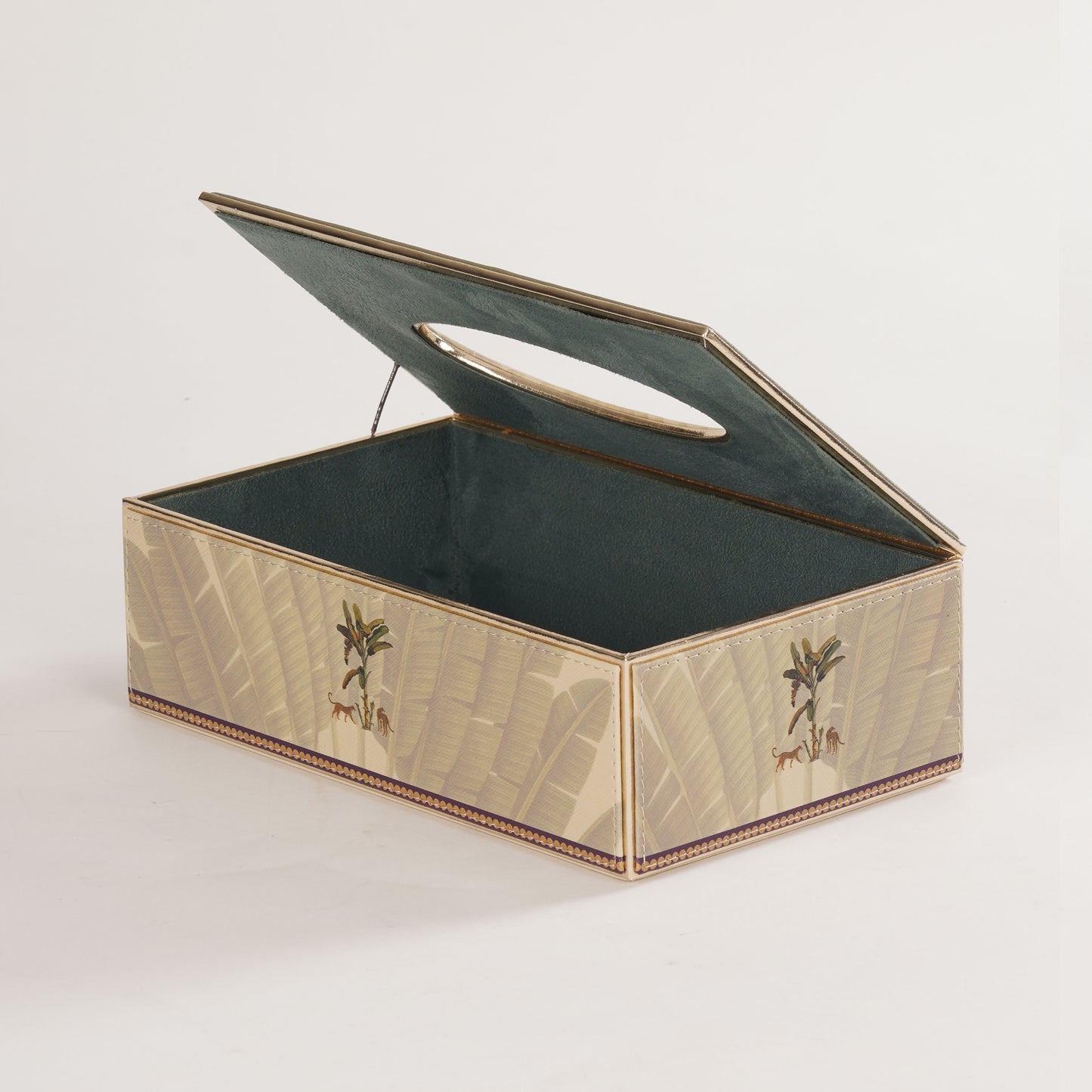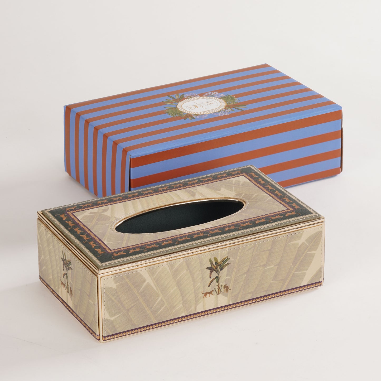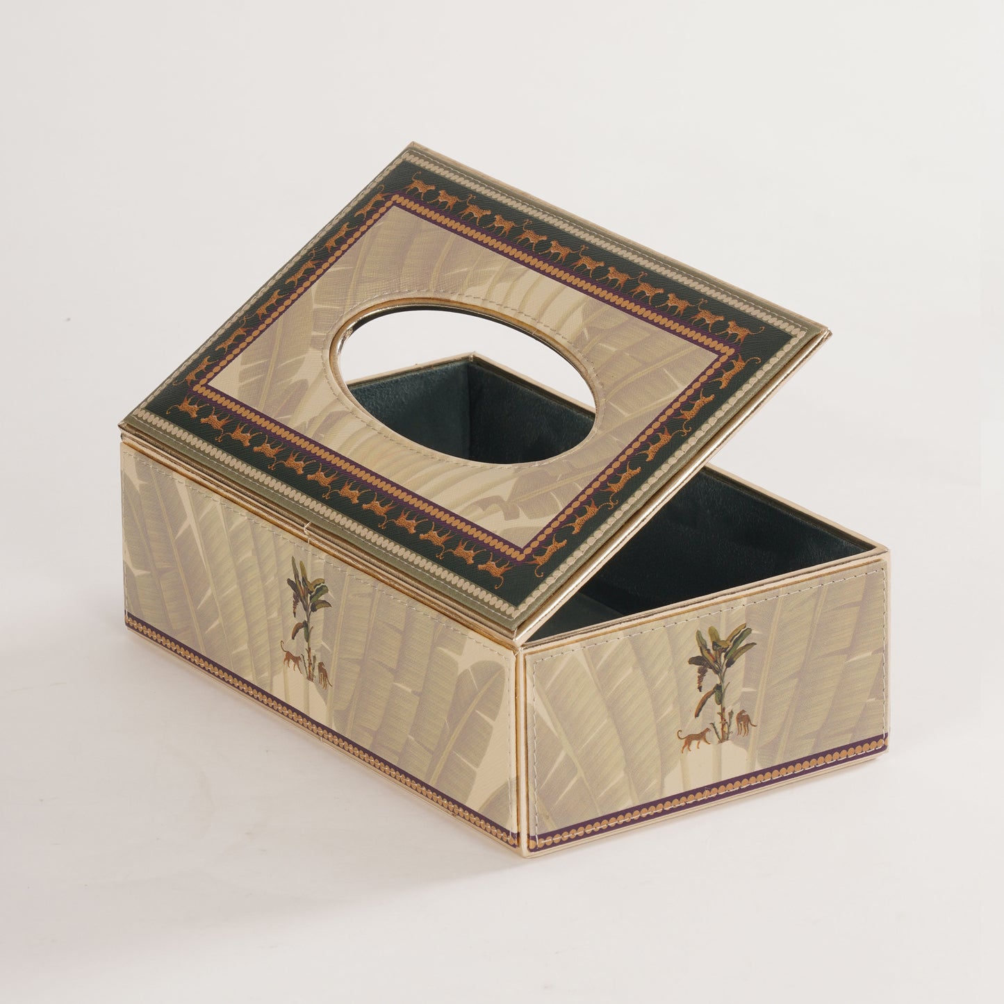Beige Leopard Print Faux Leather Tissue Box