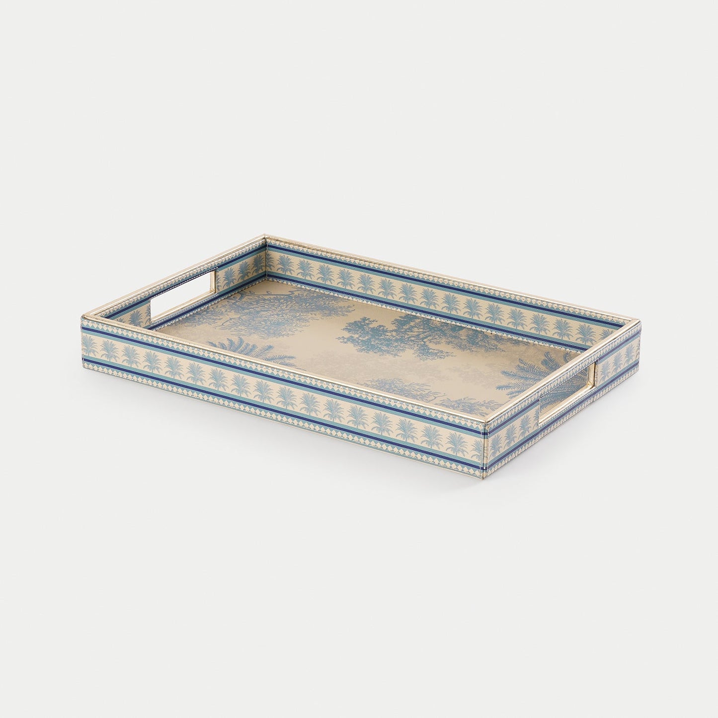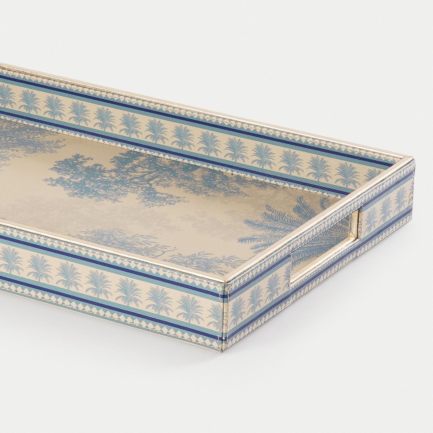 Blue Varena Faux Leather Rectangular Tray