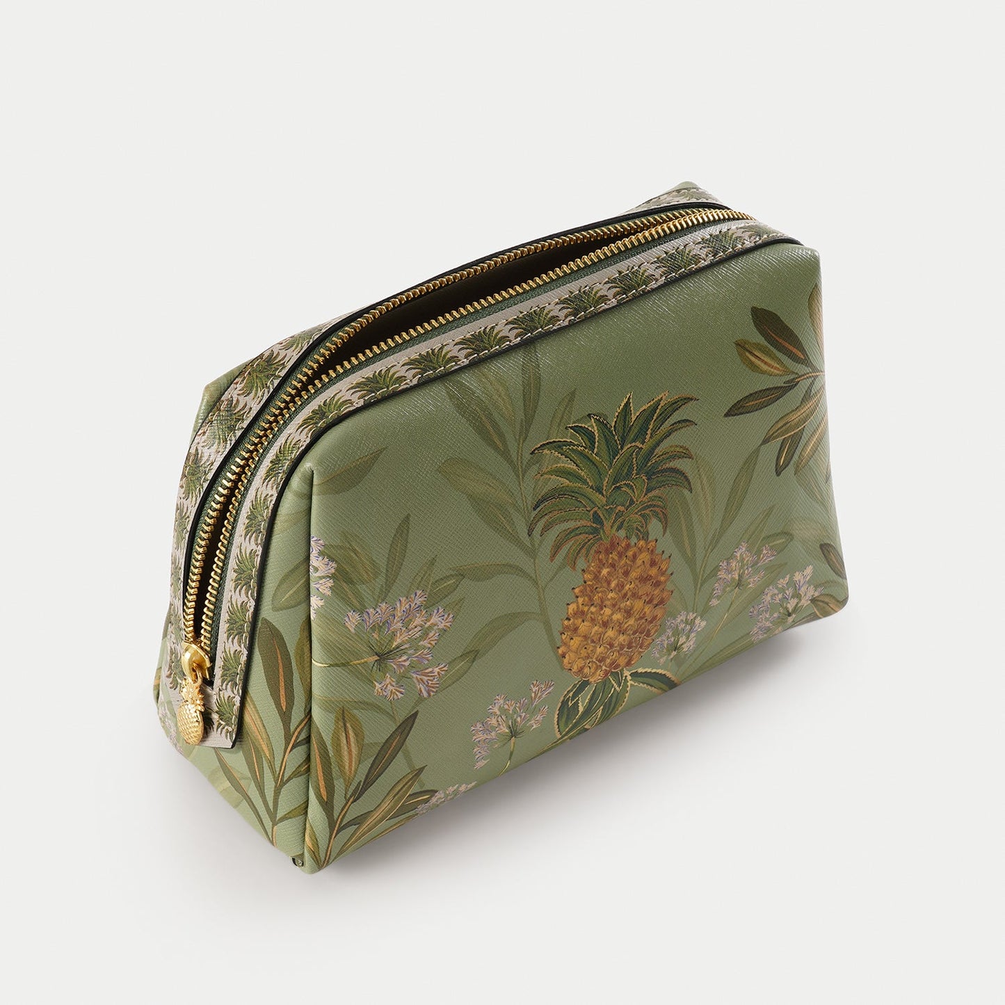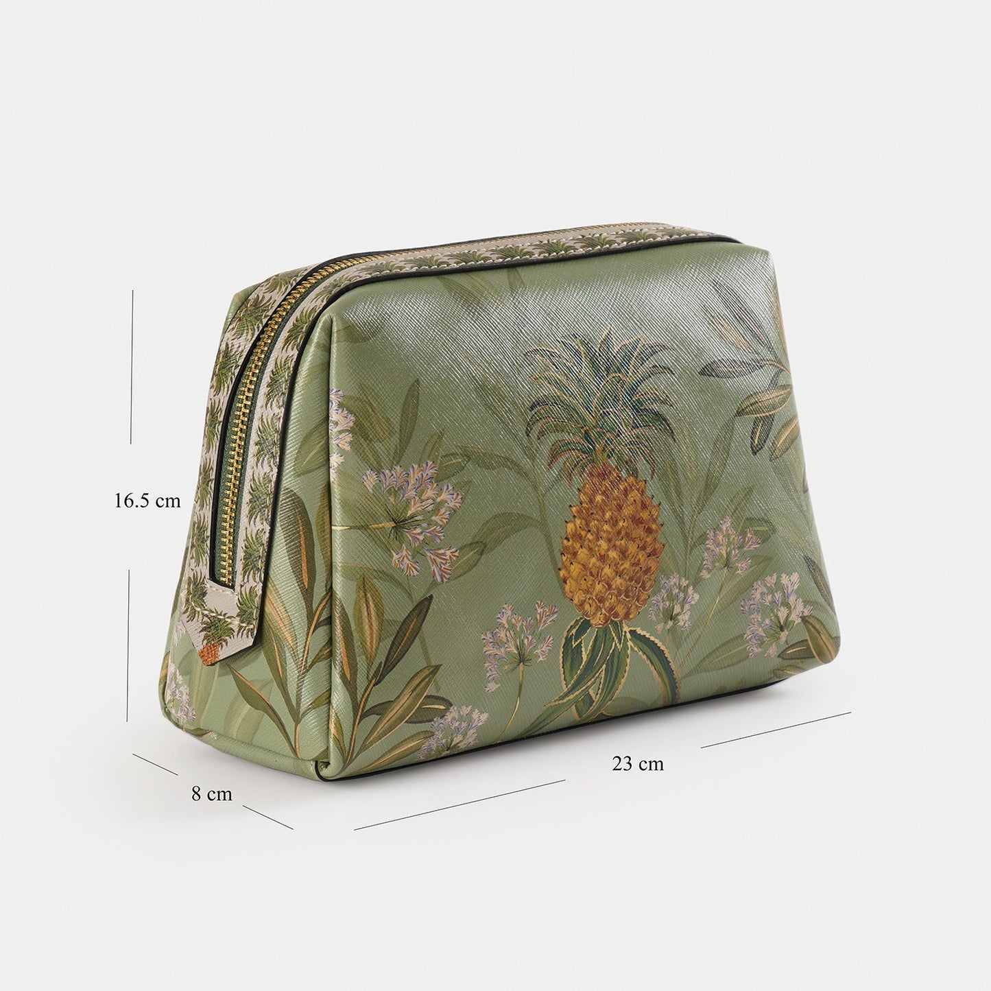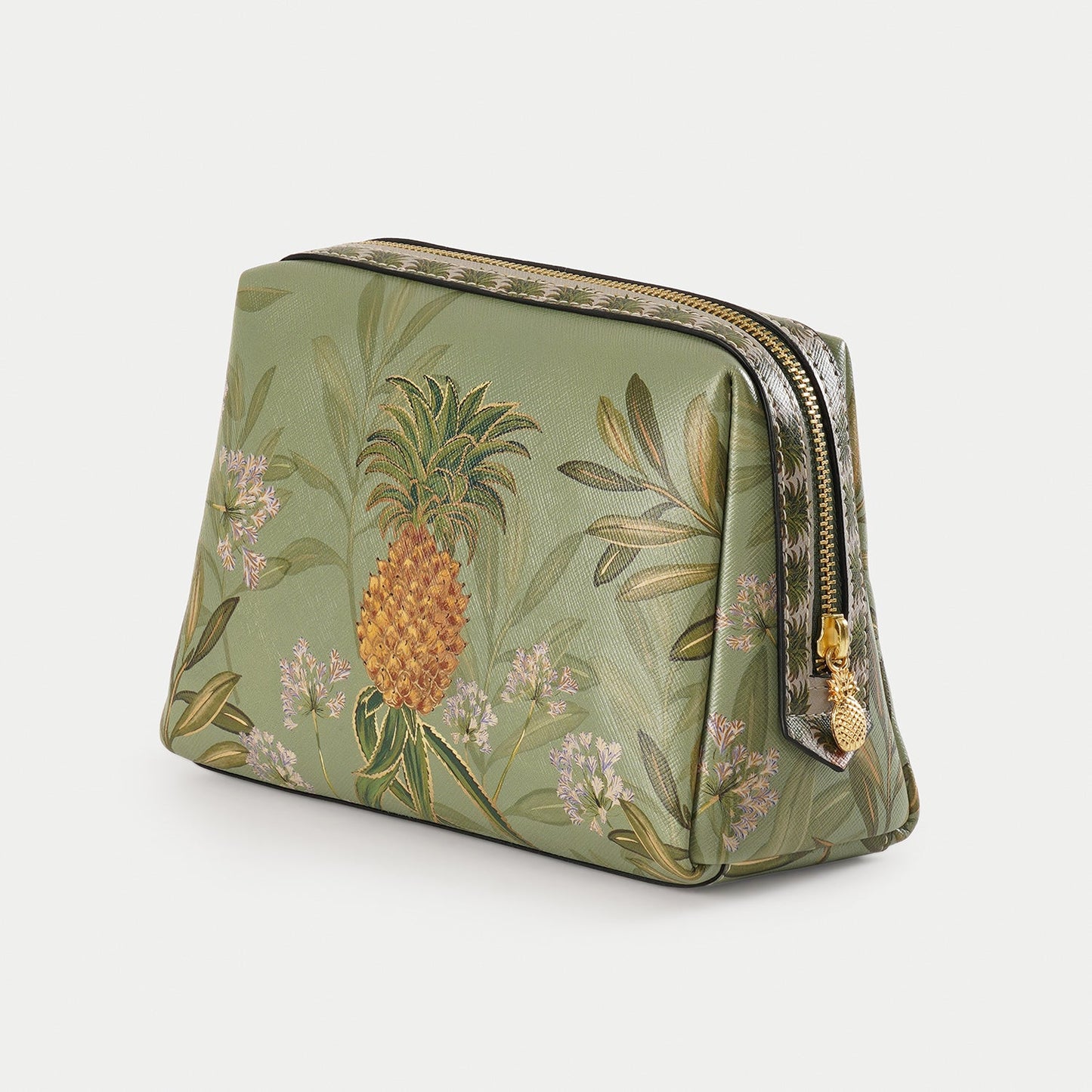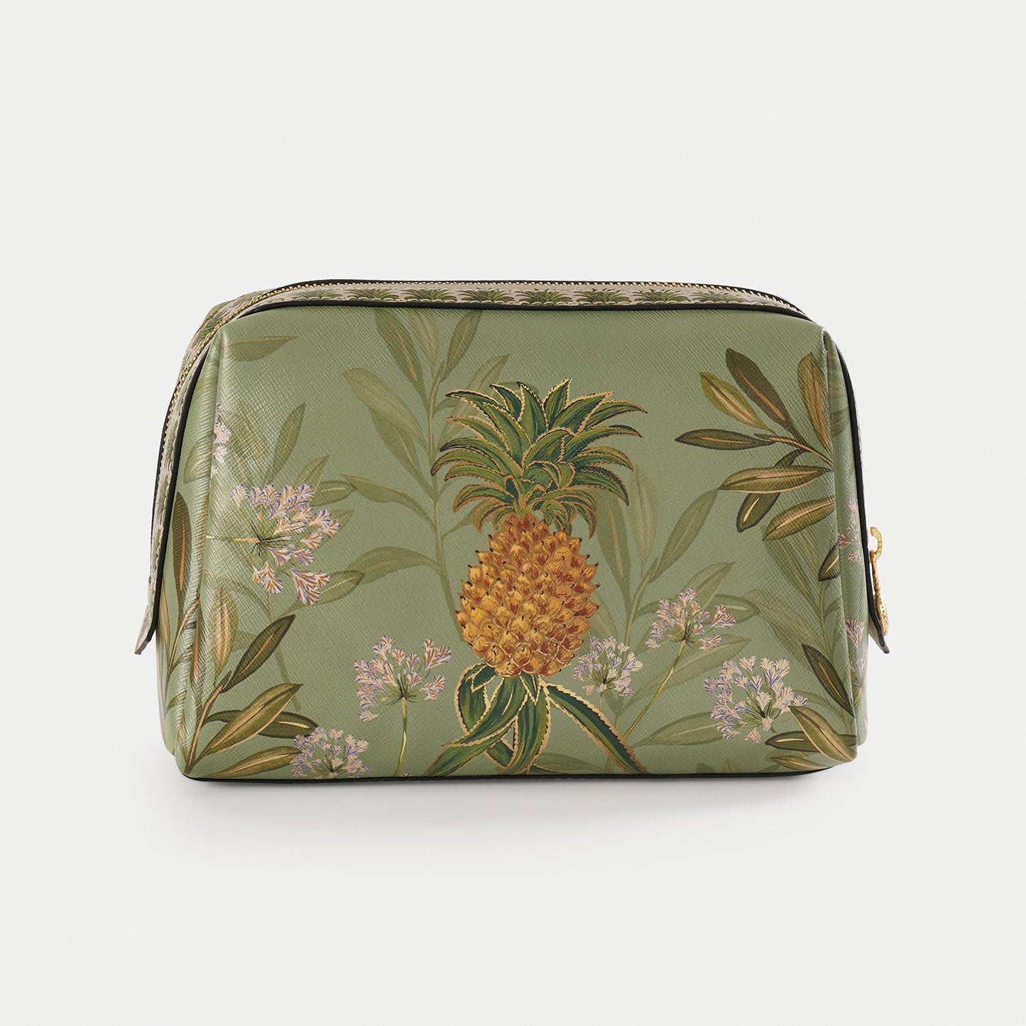 Green Pineapple Print Faux Leather Vanity Pouch - Large