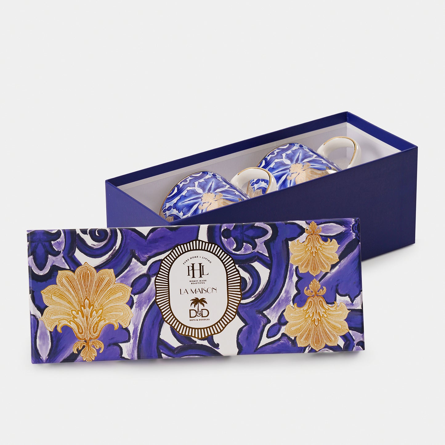 Set of 2 Blue Amalfi Print Coffee Mugs