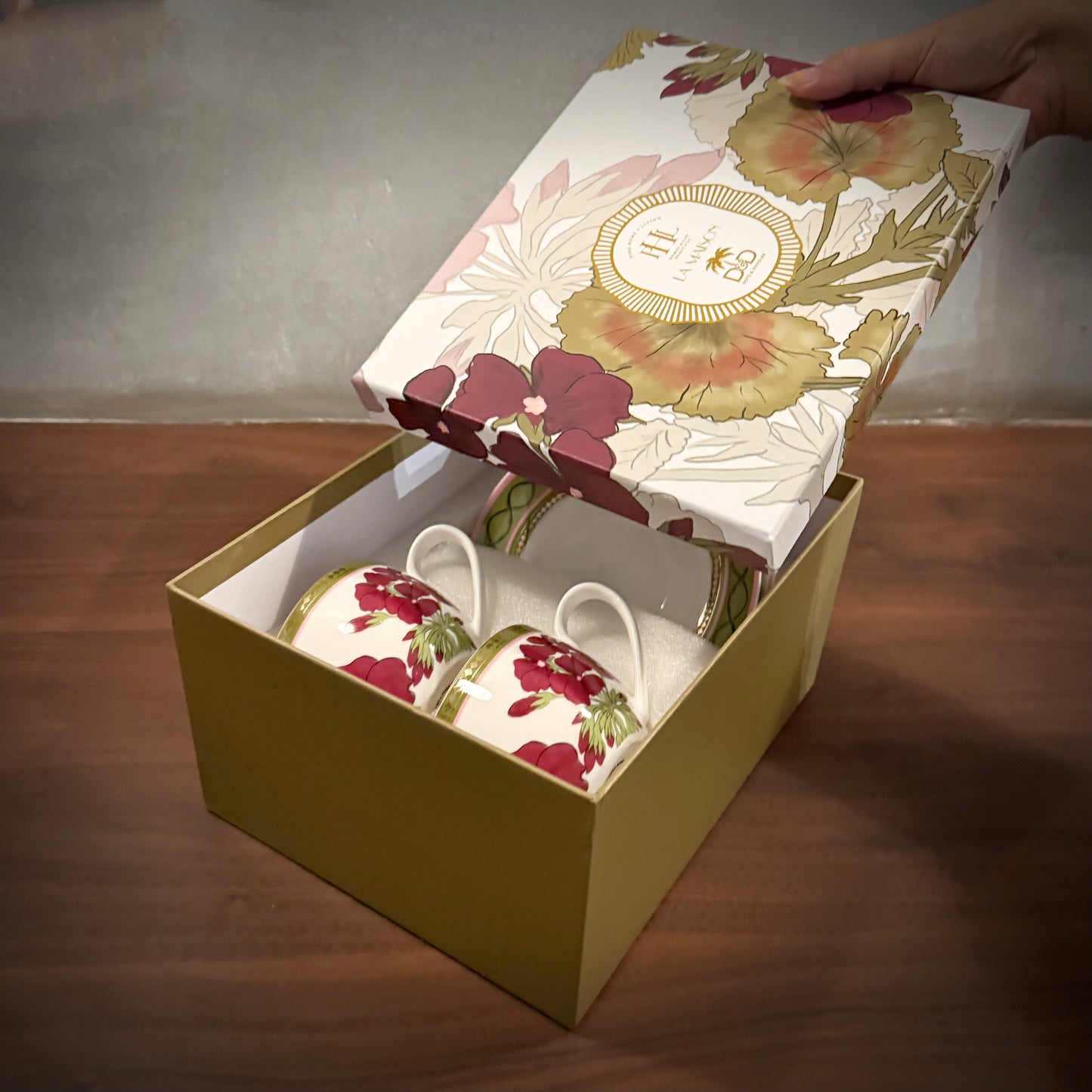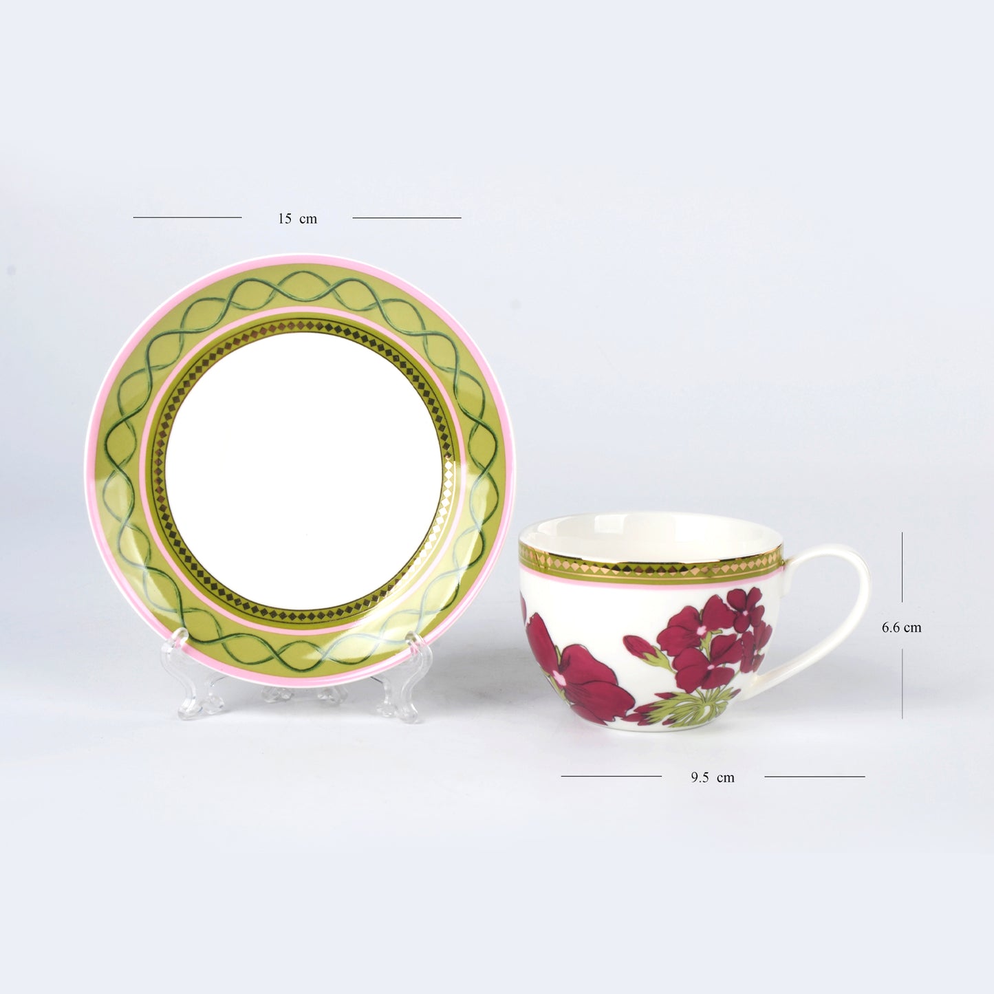 Set of 2 Rosabay Print Tea Cups & Saucers