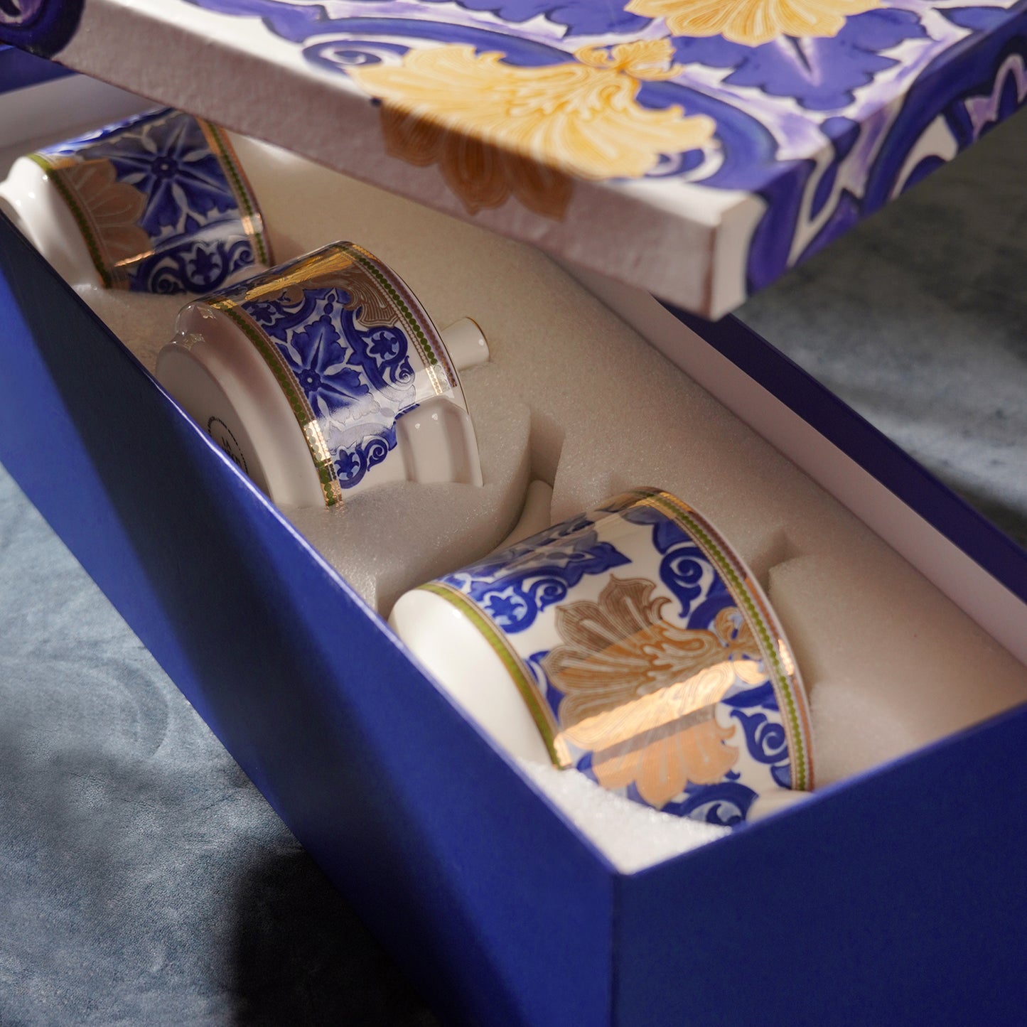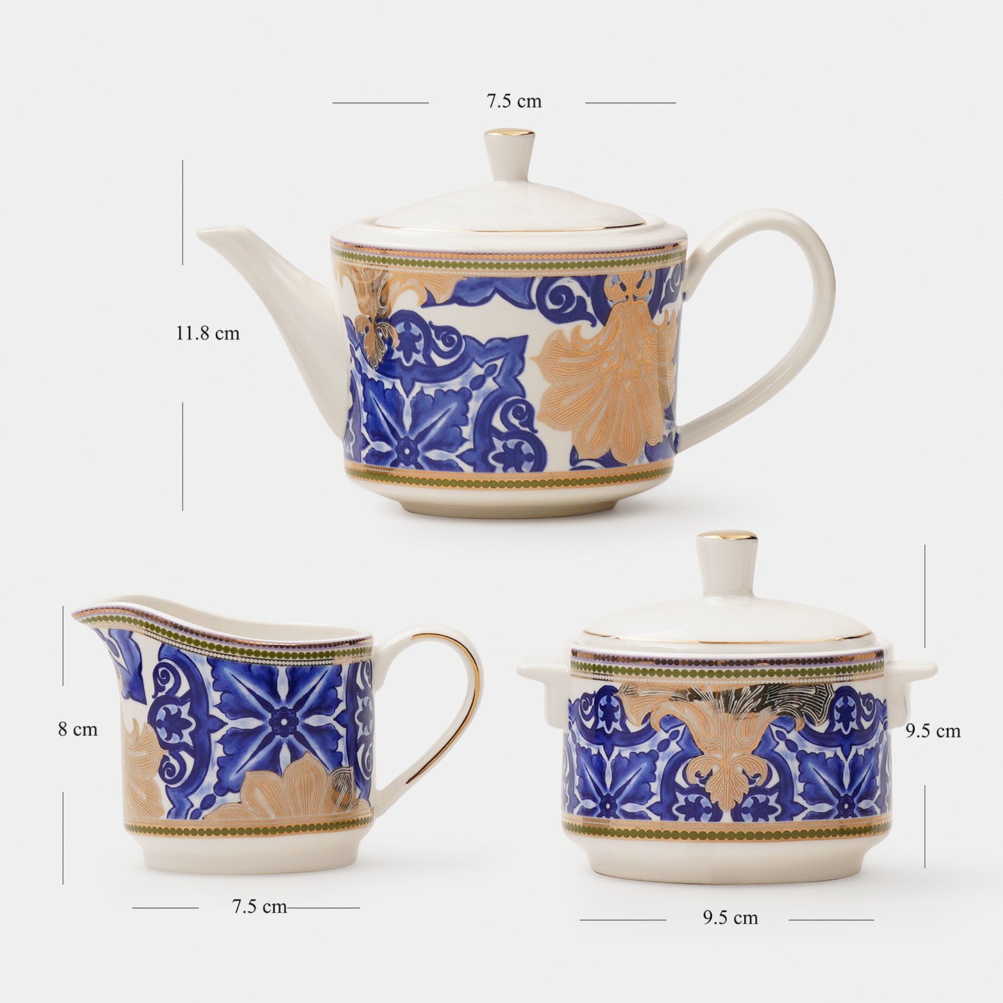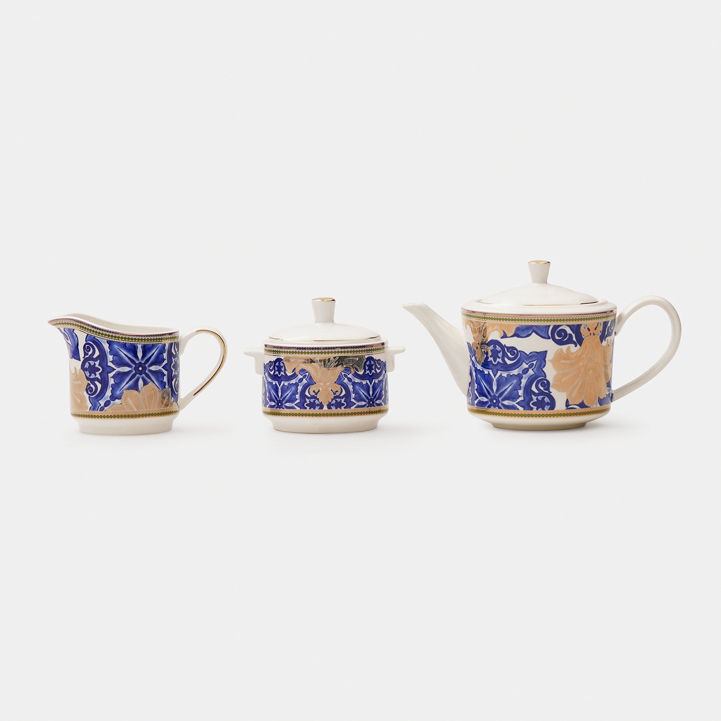 Set of 3 Blue & Ivory Amalfi Print Tea Set