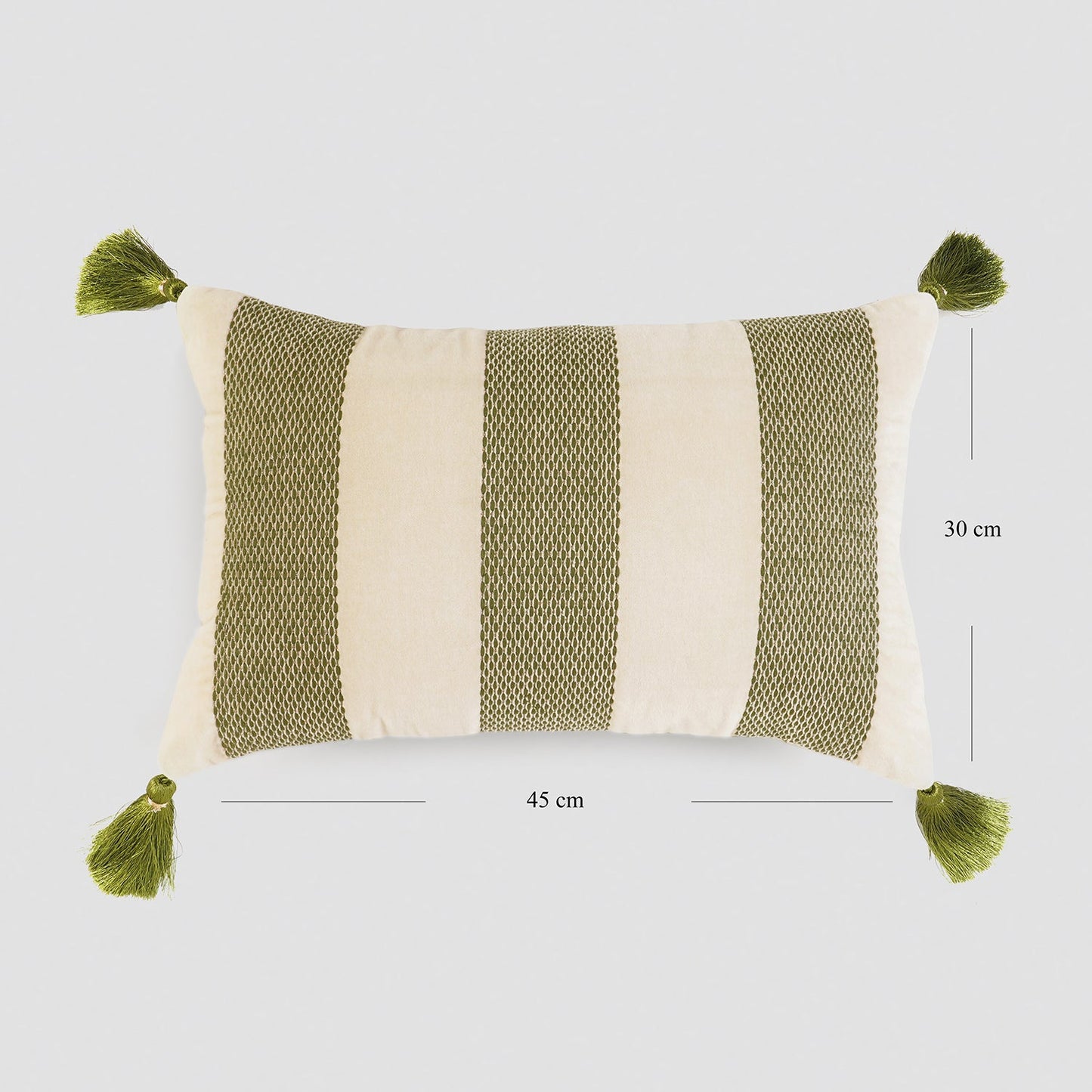This olive striped cushion cover brings the serene elegance of the sunlit Mediterranean groves into your home with its soothing green lines. Inspired by nature’s calm hues, it’s the perfect blend of fresh sophistication and relaxed charm.