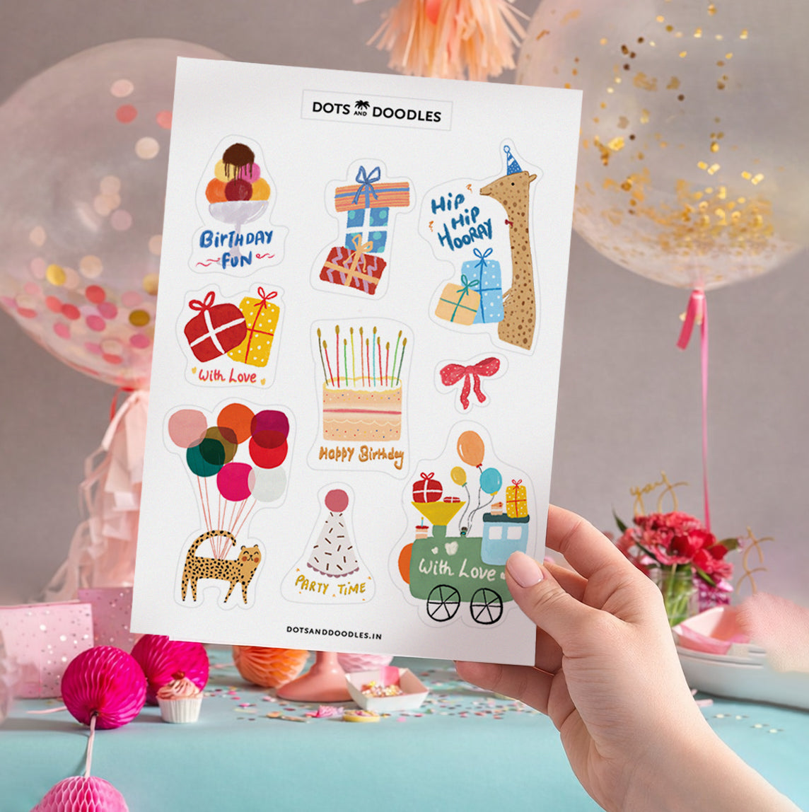 Because every envelope, notebook and gift deserves a little personality. Our illustrated sticker sheets are designed to add fun and colour to your everyday — from birthday cards and party bags to journals, lunchboxes and letters.