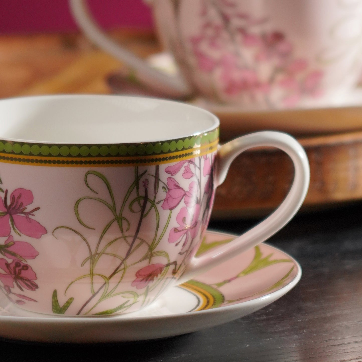 Set of 2 Rosabay Print Tea Cups & Saucers