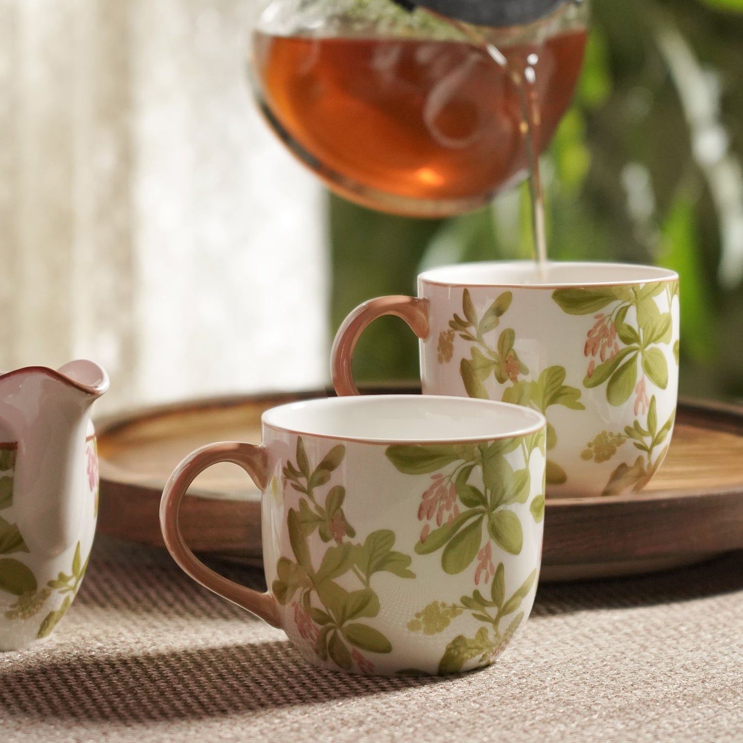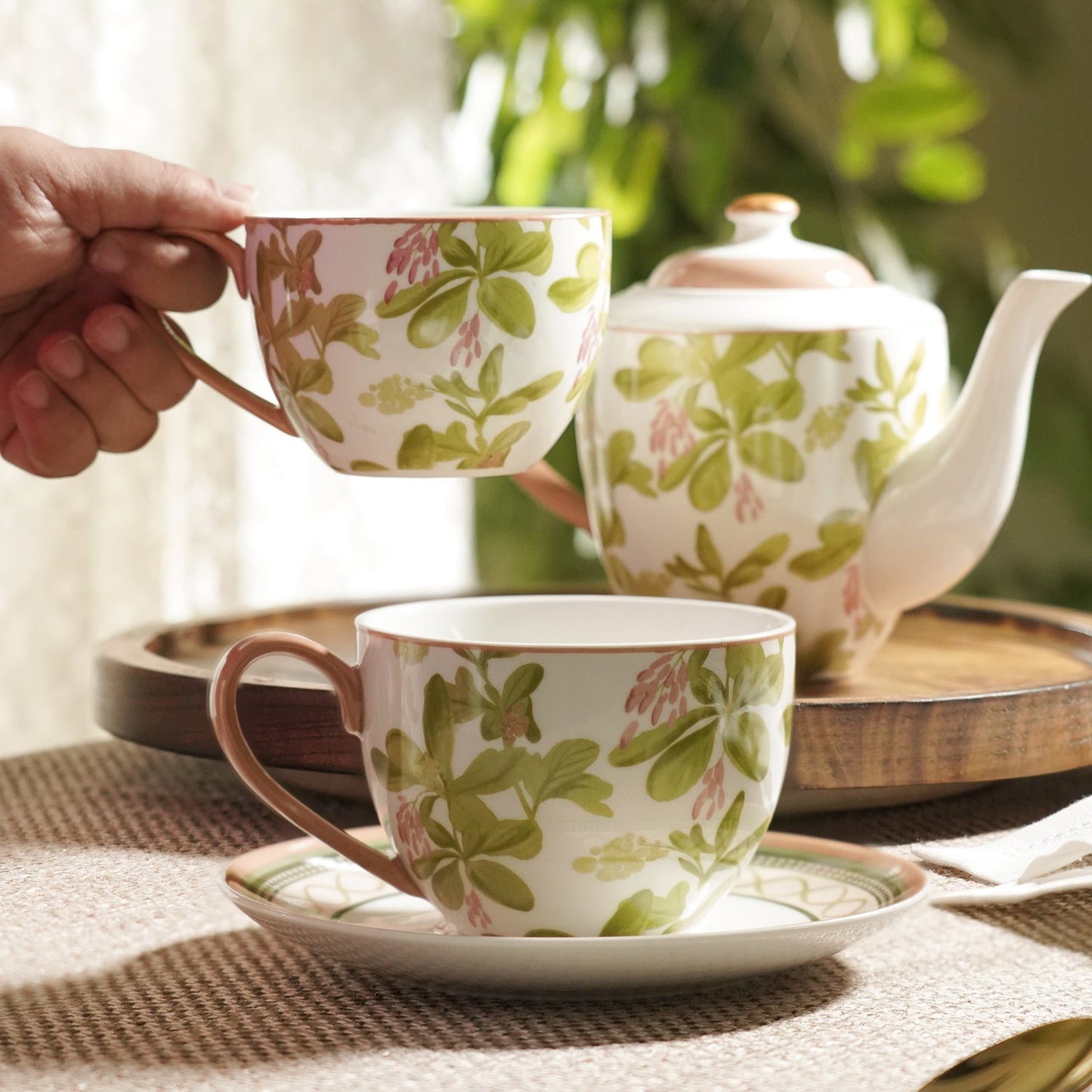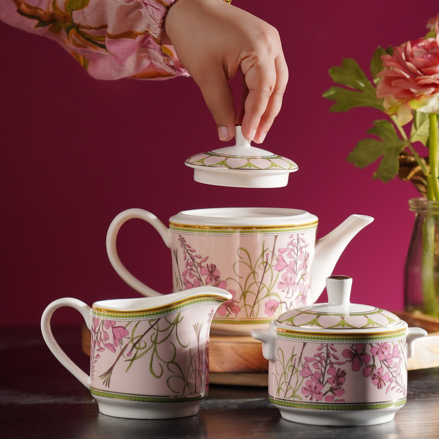 Add Set of 3 Red & Green Rosabay Print Tea Set to the cart