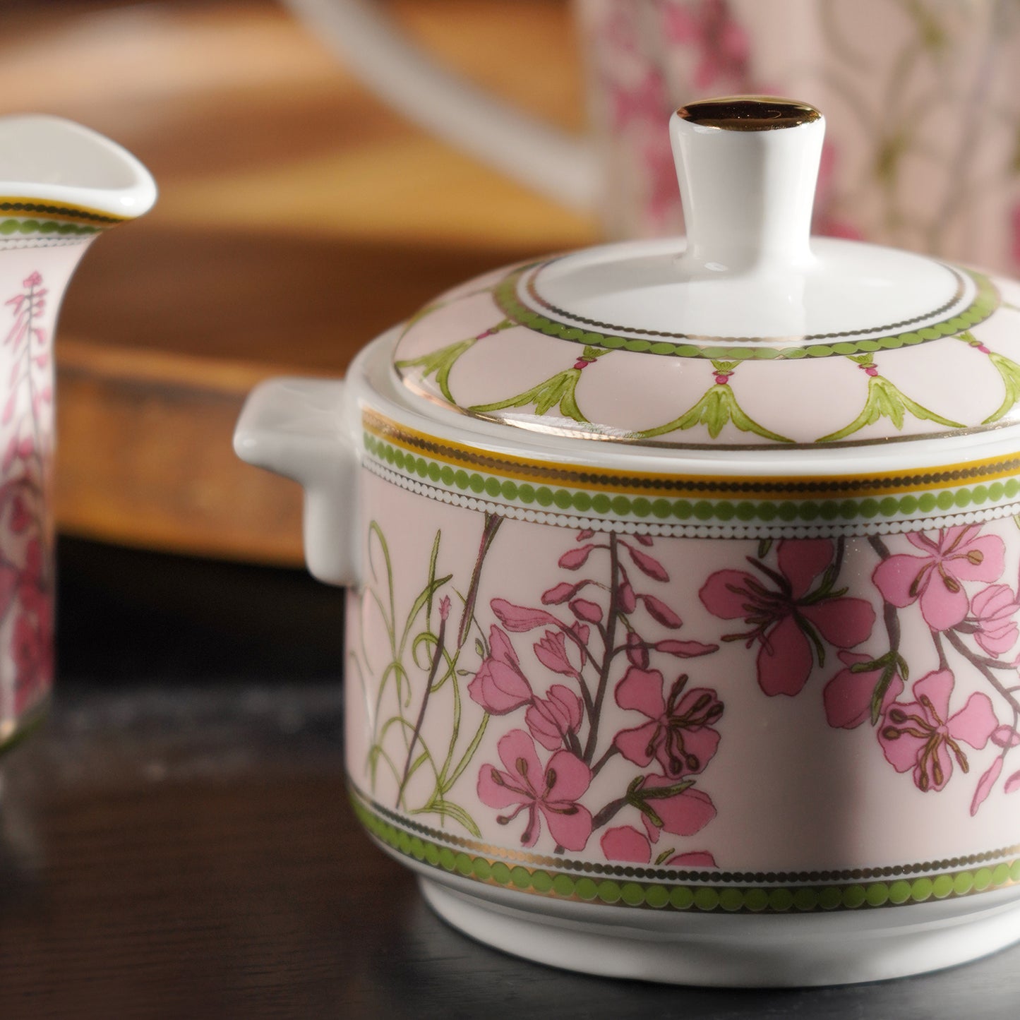Set of 2 Pink Printed Bone China Tea Cups & Saucers