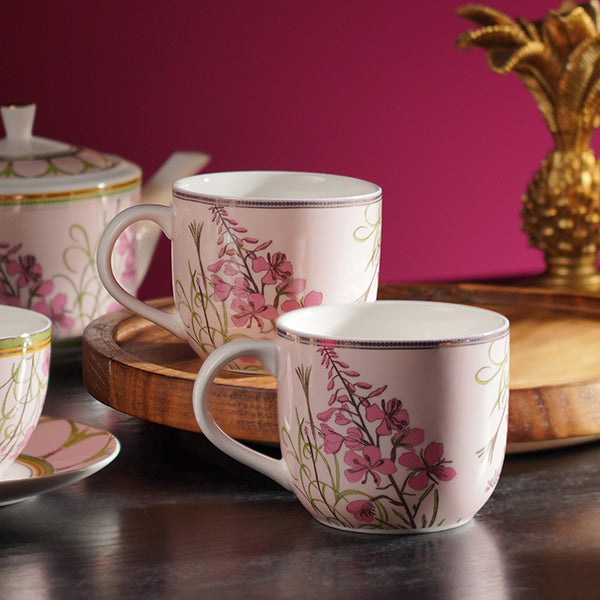 Set of 2 Pink Printed Bone China Coffee Mugs