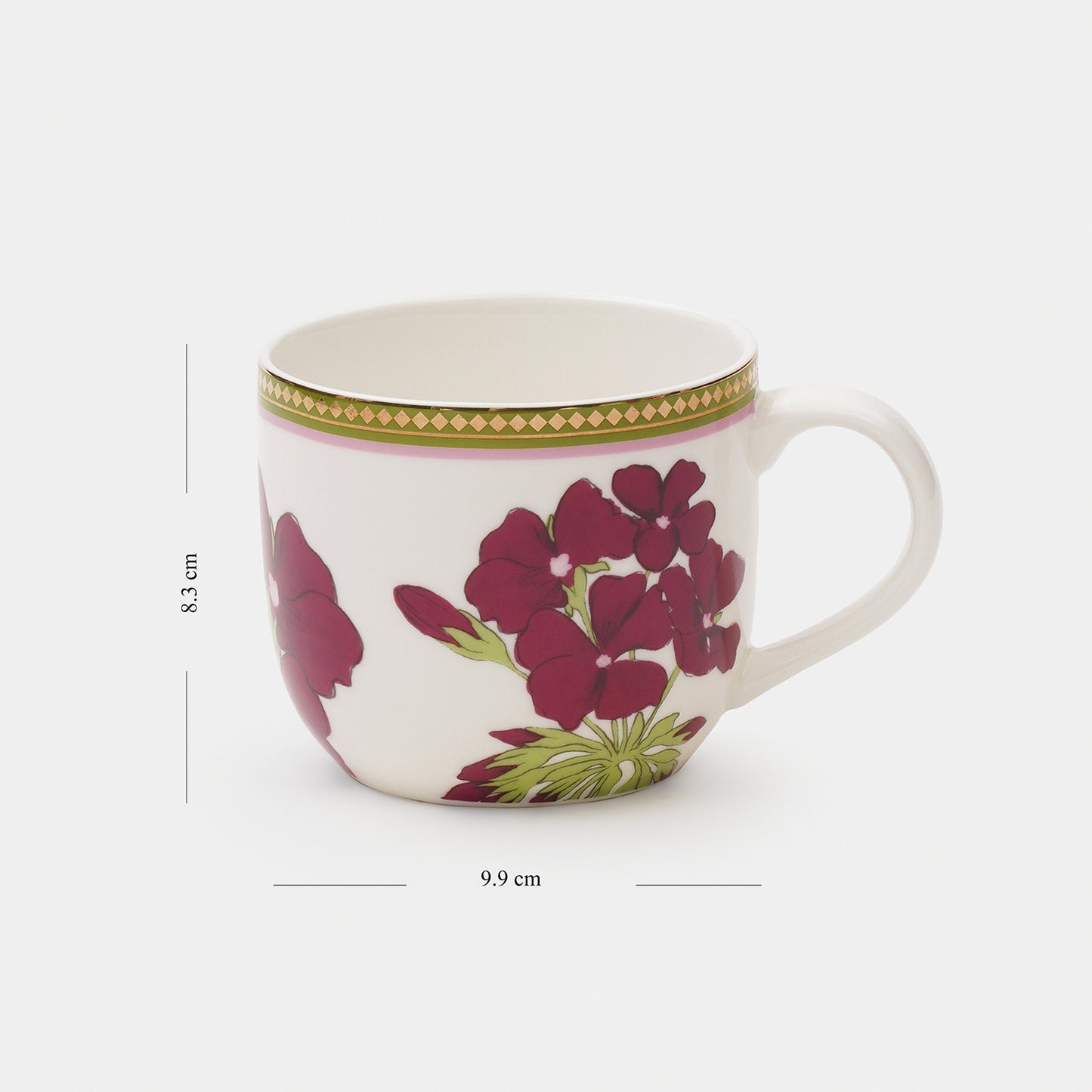Bold red florals and olive green leaves come together in this striking set of coffee mugs. Inspired by the timeless botanical motif. It adds warmth and character to your tea time.